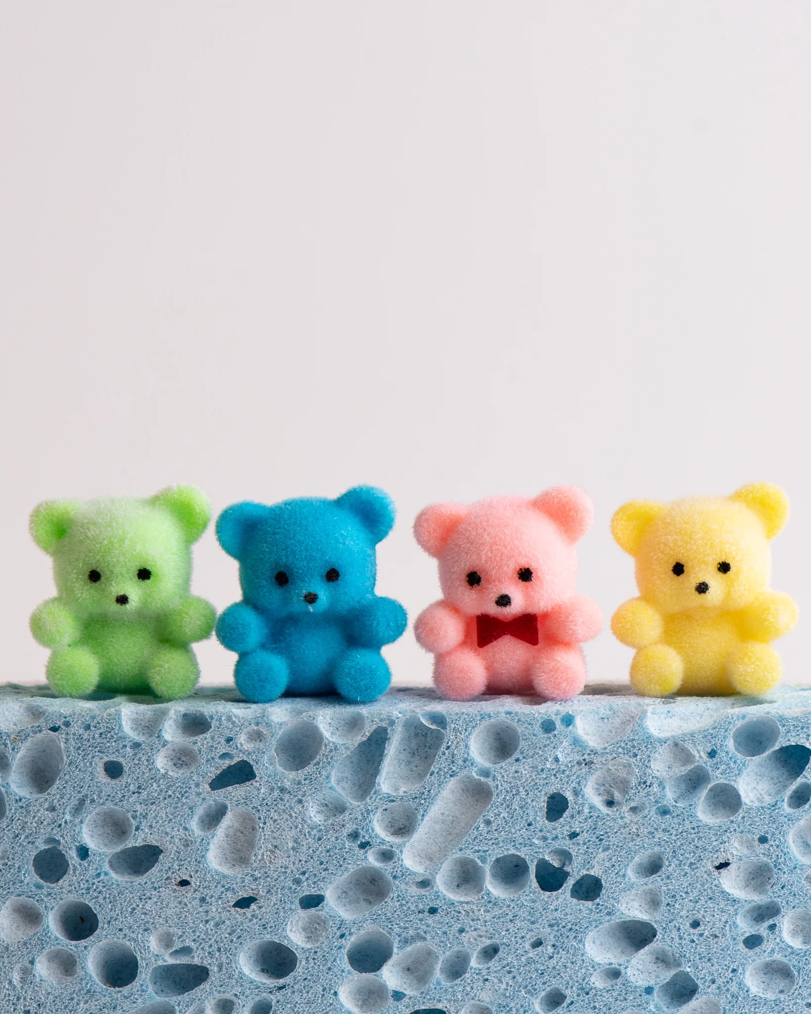 These Pastel Miniature Flocked Teddies are fun and cute decor pieces that can be used for all kinds of creative projects and celebrations. These little Teddy Bears sit sweetly with teeny, wide set black eyes and matching bitty noses. Made of flocked plastic, they’re perfect as decorations or in kids party bags.